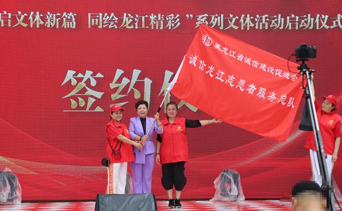 在誠信龍江志愿服務(wù)總隊(duì)成立儀式上,張波會(huì)長莊重地將象征“奉獻(xiàn)、友愛、互助、進(jìn)步”精神的“誠信龍江志愿者服務(wù)總隊(duì)”隊(duì)旗,授予首任隊(duì)長。這面旗幟的傳遞,標(biāo)志著一支服務(wù)社會(huì)、傳播誠信理念的專業(yè)志愿隊(duì)伍正式啟航。未來,志愿者們將深度融入系列文體活動(dòng)的組織、服務(wù)與宣傳,以行動(dòng)詮釋志愿精神,用熱忱擦亮“誠信龍江”品牌,為活動(dòng)成功舉辦和誠信文化播撒注入強(qiáng)勁的志愿力量。