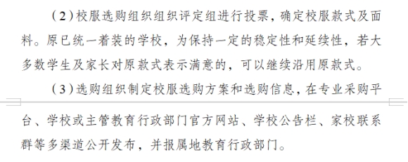 新規(guī)明確要求,學(xué)校成立的校服選購組織中,“學(xué)生和家長代表占比不得低于80%”,選購前需“征得三分之二以上家長同意”,這意味著家長在供應(yīng)商選擇、款式確定、質(zhì)量驗(yàn)收等關(guān)鍵環(huán)節(jié)擁有絕對的“投票權(quán)”。更關(guān)鍵的是“不折騰學(xué)生和家長”,原已統(tǒng)一著裝的學(xué)校,若大多數(shù)學(xué)生及家長對原款式表示滿意,可以沿用原款式。選購中需公開需求、公示結(jié)果,選購后需接受家長評價(jià)。