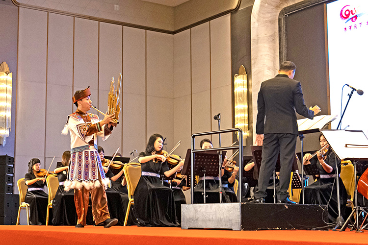 推介會在交響幻想曲《歌仙·劉三姐》中拉開帷幕,用美妙的音樂將現(xiàn)場觀眾帶到了壯鄉(xiāng)山水間。蘆笙與樂隊《節(jié)日的邊寨》、歌曲《廣西尼的呀》《連心歌》等極具廣西民族風(fēng)情的旋律,將廣西各族兒女團(tuán)結(jié)奮進(jìn)的精神風(fēng)貌娓娓道來。
