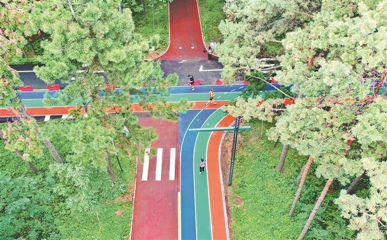 一位在這里跑步的附近居民說,林間空氣清新,負(fù)氧離子含量高,對(duì)人體有很大益處。一邊跑步健身,一邊觀賞林間美景,感覺舒服又愜意。