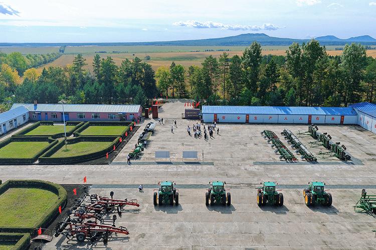 引龍河農(nóng)場構(gòu)建了完善的農(nóng)機存放與裝備體系,設(shè)有一類農(nóng)機停放場 7 處、二類停放場 7 處、臨時停放場 5 處,總面積 10.8 萬平方米,可充分滿足農(nóng)機存放需求。全場農(nóng)機總動力達 4.18 萬千瓦,155 臺動力機車覆蓋“耕、種、管、收”全環(huán)節(jié),485 臺(套)農(nóng)機具嚴格落實“五凈、四不漏、六封閉、一完好”管護標準。