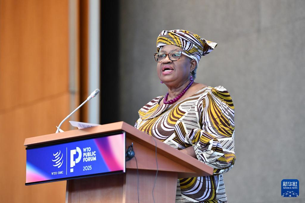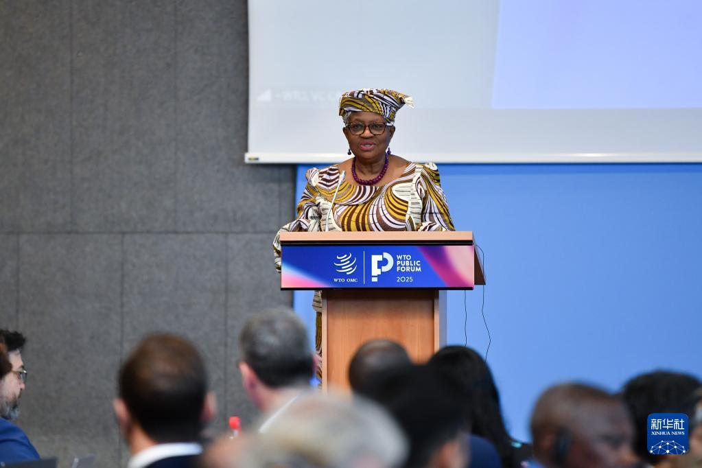 9月17日,在瑞士日內(nèi)瓦世貿(mào)組織總部,世貿(mào)組織總干事伊維拉在《2025世界貿(mào)易報(bào)告》發(fā)布會(huì)上講話。新華社記者 連漪 攝