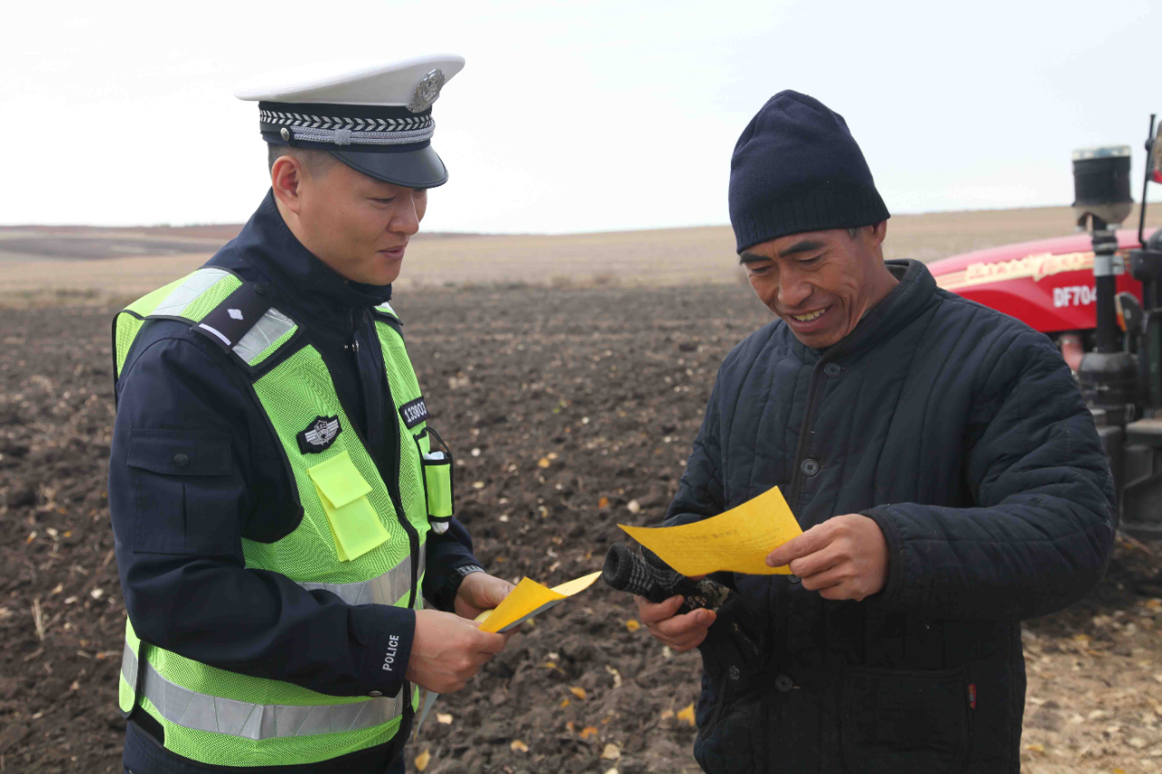 活動中,宣傳民警深入農(nóng)村大集、農(nóng)戶家中及田間地頭,通過發(fā)放交通安全宣傳資料、粘貼海報和以案說法等形式,全面細致地為村民們講解酒駕醉駕、無牌無證、超員超速、農(nóng)用車違法載人、駕乘摩托車和電動自行車不佩戴安全頭盔、駕乘汽車不系安全帶以及無證駕駛等交通違法行為的危害和嚴(yán)重后果,警示教育廣大人民群眾要自覺抵制各種交通陋習(xí),時刻牢記遵法出行、文明出行。同時,面對面地與廣大村民講交規(guī)、話安全、嘮家常,普及秋收期間道路交通安全知識和惡劣天氣條件下行車的注意事項,積極提醒廣大道路交通參與者要將“安全”二字時刻牢記心間,自覺抵制危險駕駛和不文明駕駛行為,切實做到“農(nóng)忙不忘安全,豐收更要平安”。