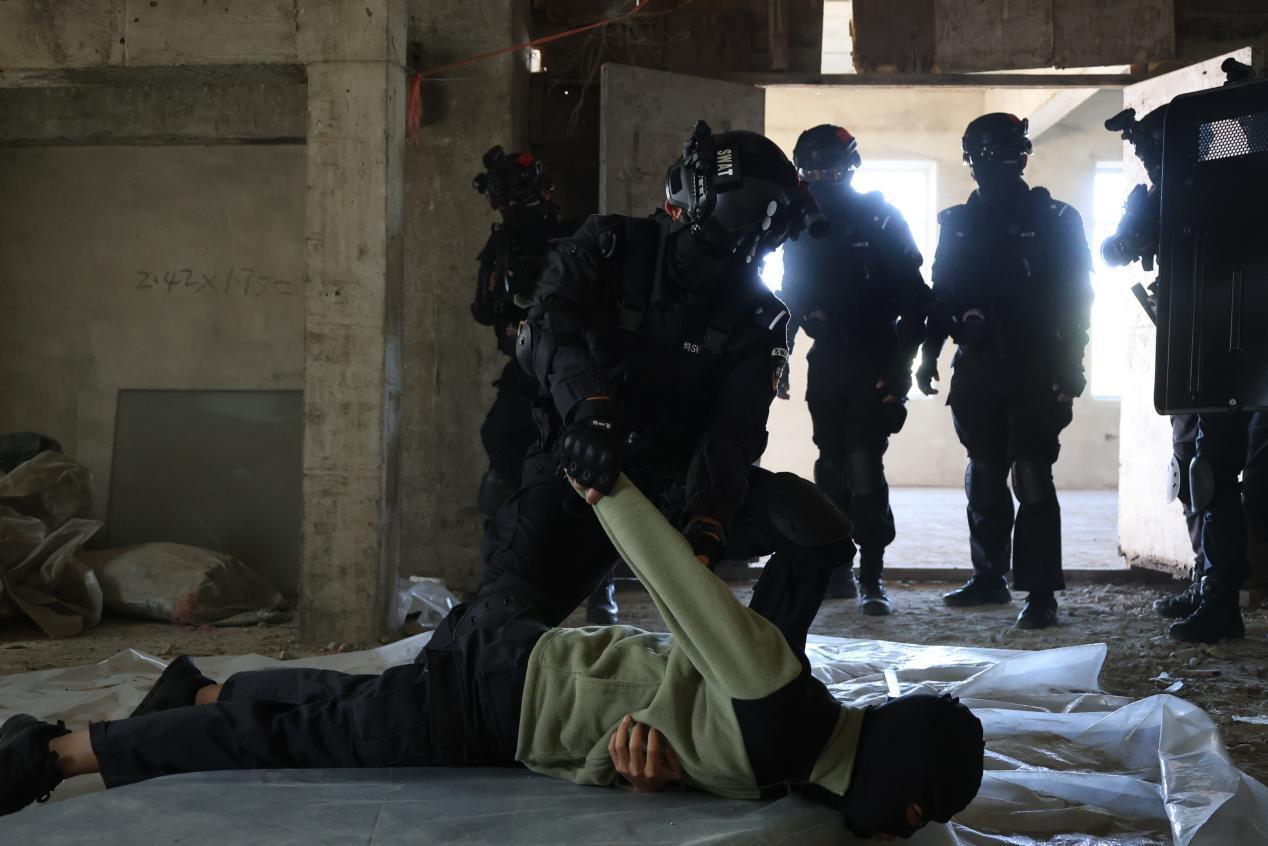 “客運站發(fā)現(xiàn)持械傷人嫌疑人,立即處置!” 指揮中心指令下達后,反恐與巡特警部門攜裝備火速集結,現(xiàn)場警戒、人員疏散、突擊抓捕同步展開 —— 這是呼瑪公安 “紅藍對抗”演練的緊張一幕。最終快速制服 “嫌疑人”,各警種銜接緊密、處置規(guī)范。