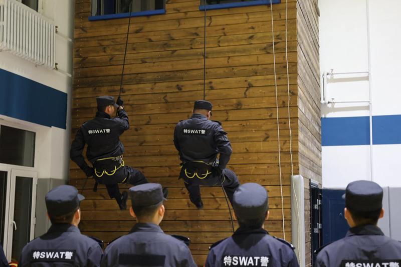 嚴(yán)苛訓(xùn)練礪精兵,汗水鑄就戰(zhàn)斗力。在戰(zhàn)術(shù)訓(xùn)練現(xiàn)場(chǎng),隨著指揮員一聲令下,隊(duì)員們迅速結(jié)成戰(zhàn)斗小組,交替掩護(hù)、快速推進(jìn),動(dòng)作連貫流暢。在徒手防控科目中,隊(duì)員們反復(fù)練習(xí)擒敵拳、控制術(shù)等技能,每一個(gè)動(dòng)作都追求標(biāo)準(zhǔn)規(guī)范。此外,針對(duì)冬季邊境地區(qū)夜長(zhǎng)晝短,反恐與巡特警大隊(duì)還專門開展夜間訓(xùn)練,隊(duì)員們?cè)谝归g環(huán)境中搭建臨時(shí)帳篷并展開夜間搜索,進(jìn)一步提升了夜間的應(yīng)急處突能力。