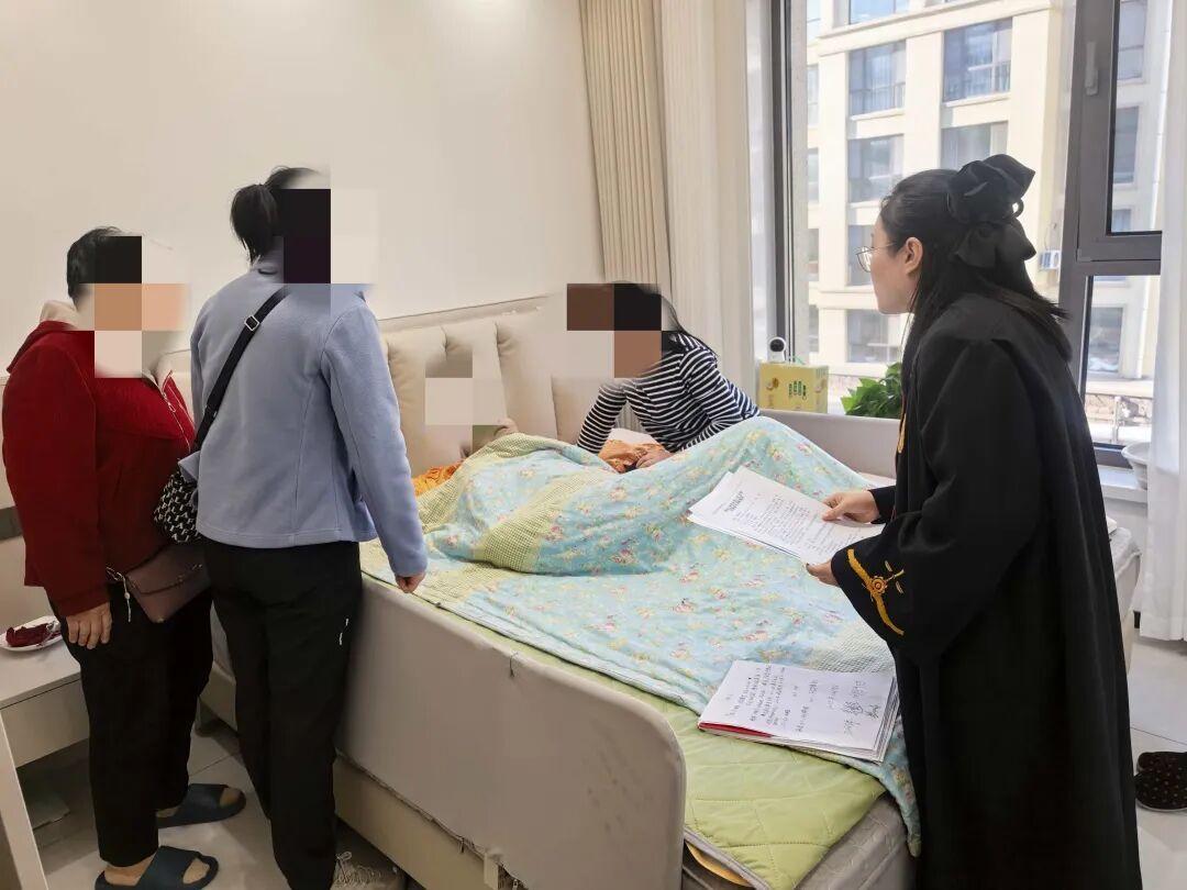 開庭當(dāng)天,干警們一進(jìn)老人家門,就忙著搭建“臨時(shí)法庭”;法官?zèng)]有用急促的問話推進(jìn)流程,反而把語速放慢了兩倍,拉著老人的手耐心傾聽——這份“把當(dāng)事人當(dāng)家人”的細(xì)致,漸漸融化了老兩口心中的芥蒂,讓他們愿意敞開心扉溝通。調(diào)解結(jié)束后,法官特意蹲在張爺爺?shù)牟〈策叾冢骸昂罄m(xù)的法律文書我們會(huì)直接送過來,您和阿姨要是有任何疑問,隨時(shí)給我們打電話,不用來回跑法院。”聽到這話,張爺爺看著干警們收拾東西的背影,渾濁的眼睛里忽然泛起了微光,他輕輕吐出兩個(gè)字:“謝謝”。這簡單的兩個(gè)字,藏著老人及家人對(duì)“司法不缺位”的深深感激,更映出了人民群眾對(duì)“司法為民”的熱切期盼。