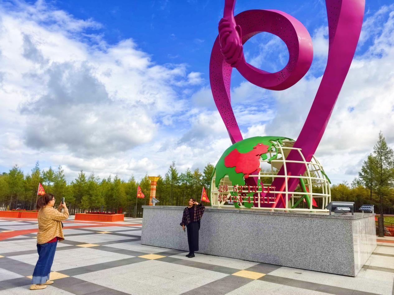 游客在中國(guó)愛(ài)情坐標(biāo)點(diǎn)打卡(李輝 攝 )