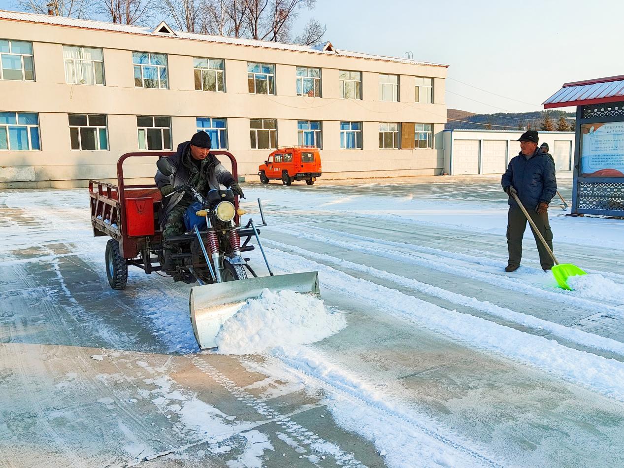 清雪現(xiàn)場(chǎng),干部職工們嚴(yán)格遵循“即下即清、雪停路凈”的原則,不畏凜冽寒風(fēng),迅速投入戰(zhàn)斗。大家分工協(xié)作,形成了“機(jī)械+人工”的高效清雪模式。職工們各展所長(zhǎng),有人駕駛自制清雪車(chē)清理積雪,有人用推雪板歸集散雪,還有人手持雪鏟、吹雪機(jī)細(xì)致清理人行道縫隙等邊角區(qū)域。經(jīng)過(guò)近3小時(shí)的奮戰(zhàn),林場(chǎng)責(zé)任區(qū)內(nèi)的積雪被清除干凈,露出了整潔的路面和暢通的通道,為職工群眾和過(guò)往車(chē)輛安全通行清出了一片“平安路”。
