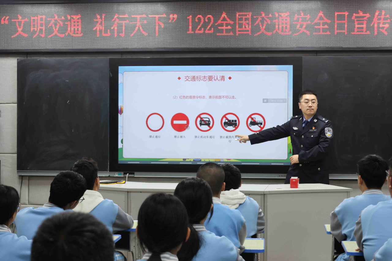 活動(dòng)中,宣傳民警結(jié)合廣大師生出行特點(diǎn)及轄區(qū)冬季道路交通實(shí)際,通過PPT演示、事故案例剖析及以案說法等方式,用通俗易懂的語言講解交通法規(guī)核心要點(diǎn)及冬季出行注意事項(xiàng)。重點(diǎn)圍繞步行過馬路“一停二看三通過”、騎行年齡限制、“一盔一帶”安全防護(hù)及汽車盲區(qū)規(guī)避等關(guān)鍵知識(shí)進(jìn)行全面細(xì)致講解,并結(jié)合典型交通事故案例,直觀揭示酒后駕駛、闖紅燈、騎行不戴頭盔等違法行為的嚴(yán)重危害,讓師生們深刻認(rèn)識(shí)“生命至上”的安全理念,進(jìn)一步增強(qiáng)安全防范意識(shí),時(shí)刻遵守交通法規(guī),不斷提高自我保護(hù)能力。