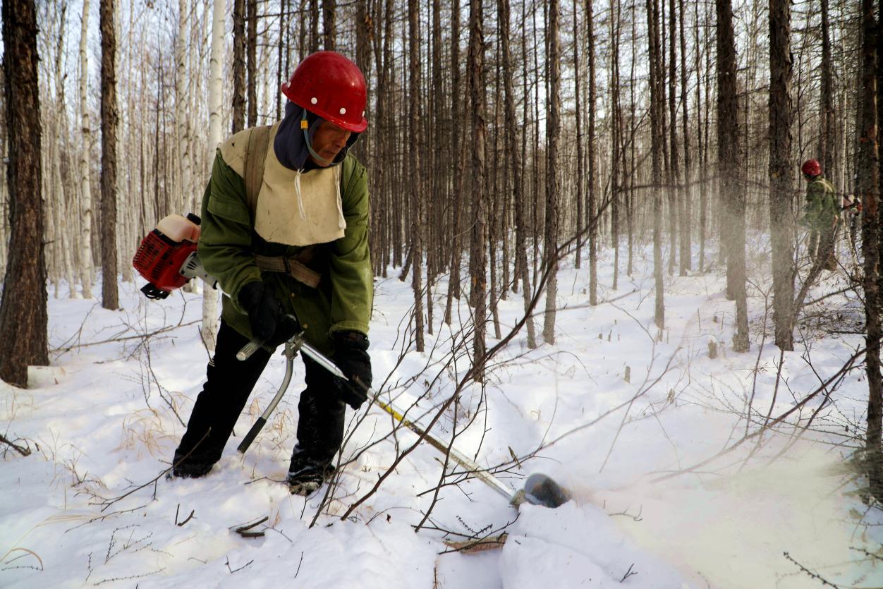 在凜冽寒風(fēng)中,這些“森林園丁”手持割灌機(jī)伐除病腐木、枯立木和風(fēng)折木等被害木,為目標(biāo)樹(shù)和保留木騰出更多生長(zhǎng)空間,以堅(jiān)守和付出守護(hù)著林海生機(jī)?!懊刻焓展せ貋?lái),鞋子、棉褲全是濕的,但看著樹(shù)木經(jīng)過(guò)修剪能茁壯成長(zhǎng),心中就充滿了成就感。”連續(xù)9年參與冬季森林撫育工作的作業(yè)組組長(zhǎng)張國(guó)生,道出了所有撫育工作人員的心聲。