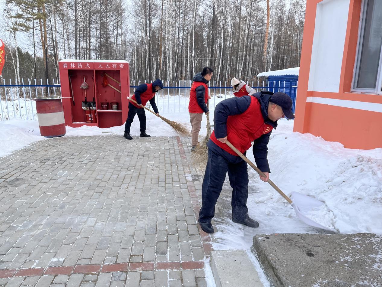 在清掃現(xiàn)場,服務(wù)隊(duì)隊(duì)長現(xiàn)場分工,志愿者們手持鐵鍬、雪推等工具,重點(diǎn)清理主干道與作業(yè)通道。大家配合默契,鏟雪、推雪、掃雪有序進(jìn)行。盡管天氣寒冷,但志愿者們干勁十足。經(jīng)過連續(xù)奮戰(zhàn),各管護(hù)站的主要道路、院落和通道積雪被徹底清除,出行安全得到保障。