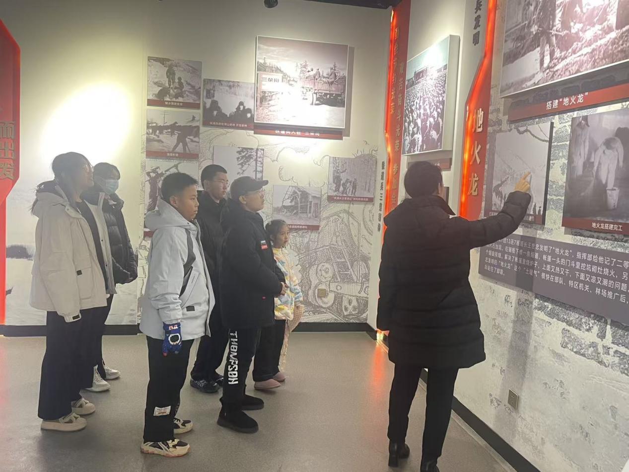 工作人員在為職工子女講解新林開發(fā)建設(shè)的奮斗歷程(宗海燕 攝)