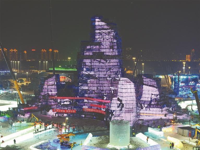 作為目前全球規(guī)模最大的冰雪主題園區(qū),本屆哈爾濱冰雪大世界總用冰量、用雪量雙雙刷新紀(jì)錄。施工現(xiàn)場,上萬名來自龍江安裝集團(tuán)的建設(shè)者在低溫中晝夜奮戰(zhàn),18個(gè)冰建工區(qū)、5個(gè)雪建工區(qū)同步推進(jìn),園區(qū)建設(shè)已完成70%。