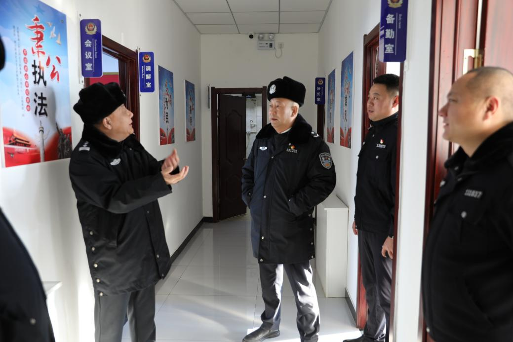馬躍海對(duì)基層派出所在維護(hù)轄區(qū)穩(wěn)定、服務(wù)群眾等方面取得的成效給予肯定,并提出明確工作要求。一是要持續(xù)夯實(shí)基層基礎(chǔ),不斷完善治安防控網(wǎng)絡(luò),優(yōu)化基礎(chǔ)設(shè)施配置,提升基層治理智能化、精細(xì)化水平和治理效能,切實(shí)把矛盾糾紛化解在基層、解決在萌芽狀態(tài)。二是要時(shí)刻繃緊安全之弦,針對(duì)冬季道路通行特點(diǎn),強(qiáng)化重點(diǎn)路段巡邏管控、隱患排查整治和交通違法查處,狠抓各項(xiàng)防控措施落實(shí),全力防范各類道路交通事故,全力守護(hù)人民群眾生命財(cái)產(chǎn)安全。三是要加強(qiáng)隊(duì)伍規(guī)范化建設(shè),始終堅(jiān)持政治建警、從嚴(yán)治警,強(qiáng)化業(yè)務(wù)培訓(xùn)和紀(jì)律作風(fēng)建設(shè),不斷提升民輔警履職能力和服務(wù)水平,以實(shí)際行動(dòng)回應(yīng)群眾期待,全力鍛造一支忠誠(chéng)干凈擔(dān)當(dāng)?shù)倪^(guò)硬公安鐵軍。