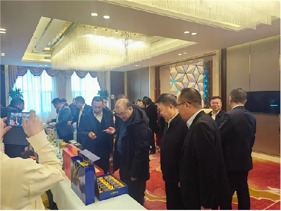 恩施州高新投資發(fā)展集團有限公司董事長胡銘現(xiàn)場推介與硒資源研究與生物應用湖北省重點實驗室聯(lián)合開發(fā)的特色硒精深加工產(chǎn)品。