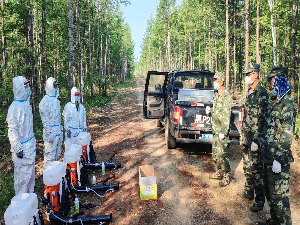 新林林業(yè)局專業(yè)技術(shù)人員在開(kāi)展病蟲害防治工作(張瑩 攝)