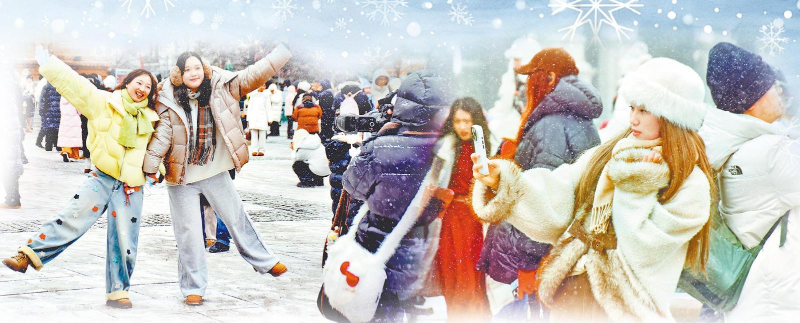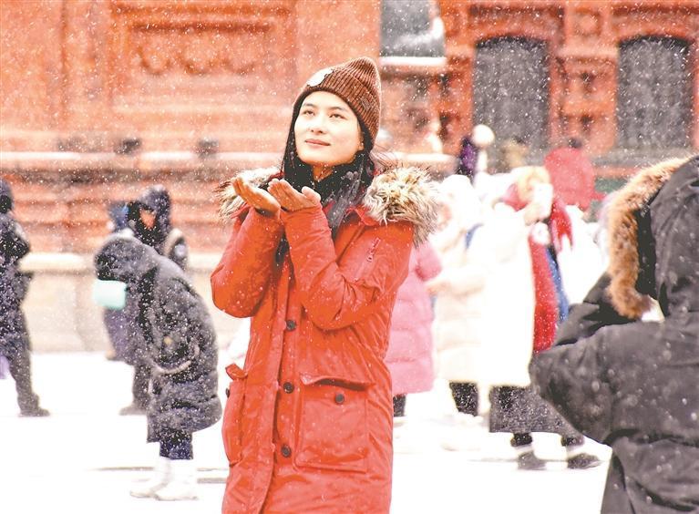 17日,正月初一。哈爾濱市迎來了降雪天氣。樹上、車上、建筑上、道路上都落了一層白雪,為節(jié)日里的冰城增添了更多魅力。在各處景點(diǎn),市民和游客在雪中拍照、玩耍,盡享降雪帶來的快樂。