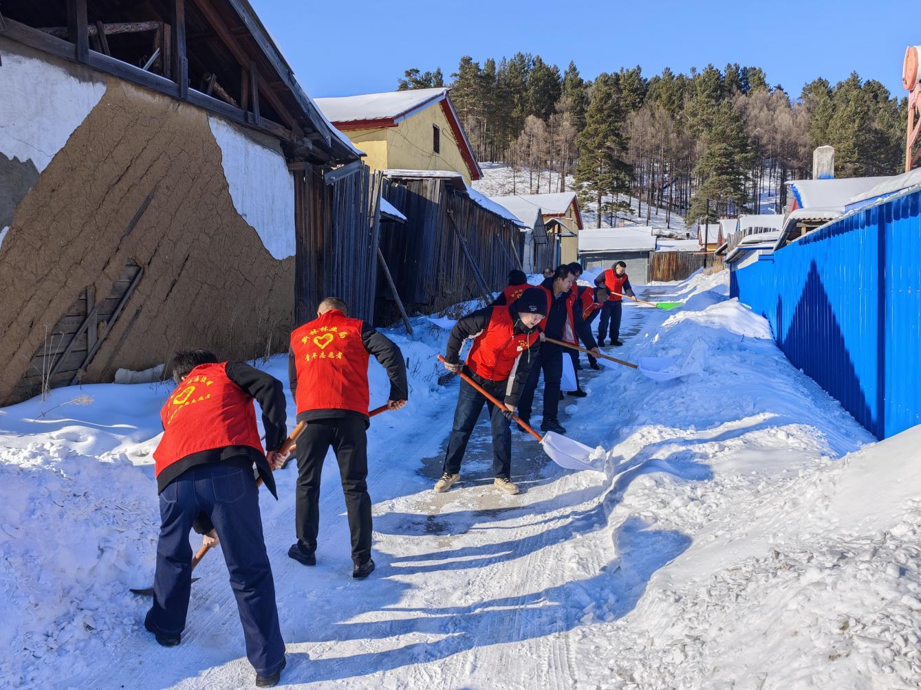 新林林業(yè)局團(tuán)委開展“情暖街區(qū)”除積雪志愿服務(wù)(冀威威 攝)