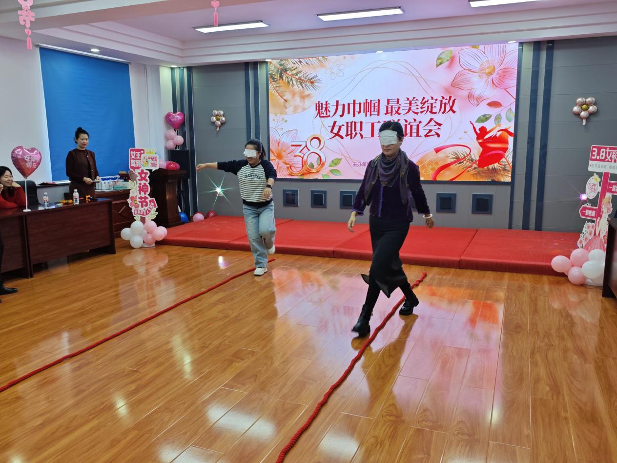 互動(dòng)游戲環(huán)節(jié)同樣妙趣橫生,“桃花朵朵開”“漏框接氣球”“蒙眼走繩子”“蒙眼喝飲料”等趣味項(xiàng)目,讓女職工們暫時(shí)卸下工作壓力,在比拼中增進(jìn)情誼,在歡聲笑語(yǔ)中放松身心?,F(xiàn)場(chǎng)加油聲、喝彩聲此起彼伏,持續(xù)將活動(dòng)氛圍推向高潮。